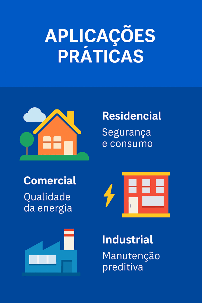 - INDUSTRIAL: Realizar testes preventivos em máquinas e equipamentos, monitorar a qualidade da energia e garantir a segurança dos trabalhadores.