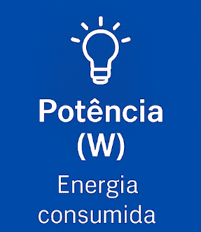 A taxa de consumo de energia elétrica. Medida em watts (W), a potência combina a tensão e a corrente para determinar quanta energia está sendo utilizada por um dispositivo ou sistema.
