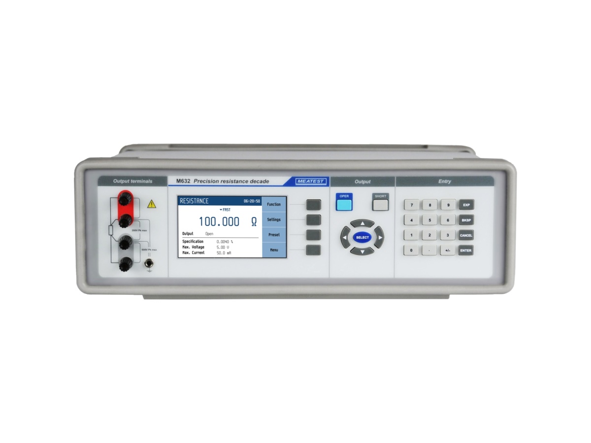- A M632 Caixa de Décadas de Resistência Real é um instrumento de referência de alta precisão, projetado para laboratórios de calibração. Com uma faixa de resistência de 1 Ω a 1,2 MΩ e uma precisão excepcional de 20 ppm, este dispositivo é ideal para profissionais que exigem medições exatas e consistentes em suas aplicações.
