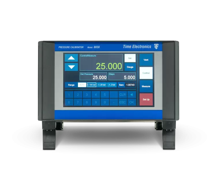 - O 8030 é um controlador/calibrador de pressão avançado adequado para calibração de ampla carga de trabalho de dispositivos de pressão, como transmissores, sensores e medidores. A unidade padrão pode ser configurada para várias faixas de vácuo a 100 bar (1500 psi), integrando até três sensores de referência de alta precisão para cobertura máxima de carga de trabalho. Além disso, uma opção de referência barométrica permite emulação de pressão absoluta. Versões de sensor duplo de alta faixa de até 230 bar (3350 psi) também estão disponíveis.