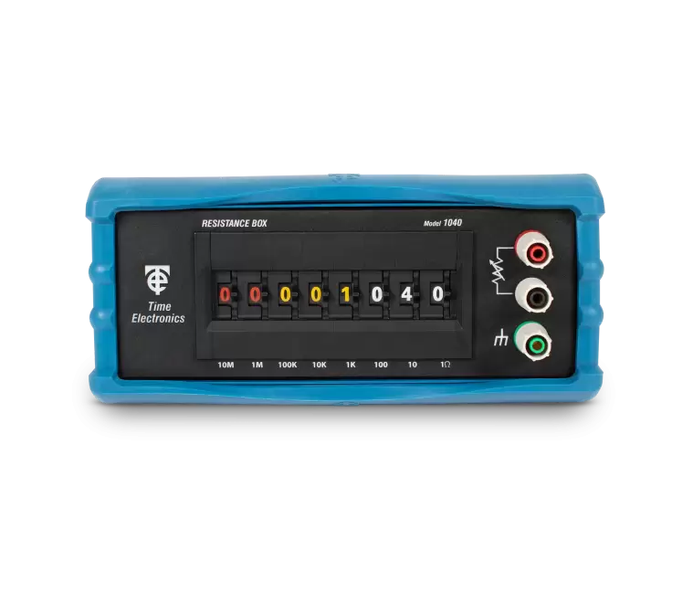 - A década resistiva de ampla faixa de precisão projetada para atender aos requisitos da indústria e da educação. O 1040 é compacto e durável, alojado em uma caixa de metal robusta com capa de borracha protetora removível, tornando-o ideal para uso em laboratório ou em campo. Excelente precisão (escala média de 0,1%) é obtida usando resistores de filme de metal de alta estabilidade. O interruptor de roda de polegar de 8 dígitos permite uma configuração simples e precisa com uma indicação clara do valor de resistência.
