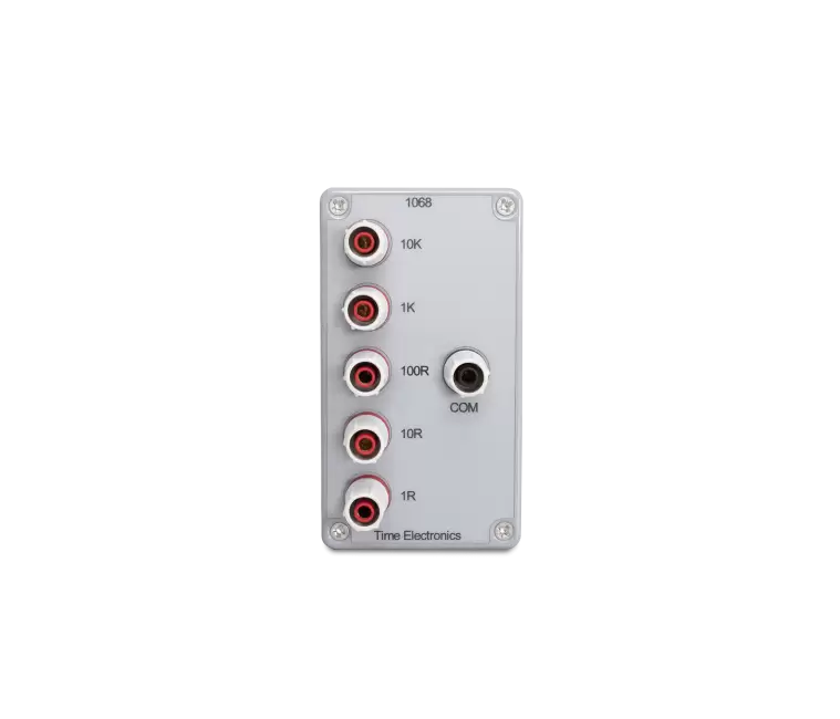 - A alta precisão obtida no 1068 é alcançada pelo uso de resistores de precisão. Para selecionar um valor, basta conectar os cabos de teste a um dos resistores de valor fixo; 1Ω, 10Ω, 100Ω, 1kΩ ou 10kΩ.