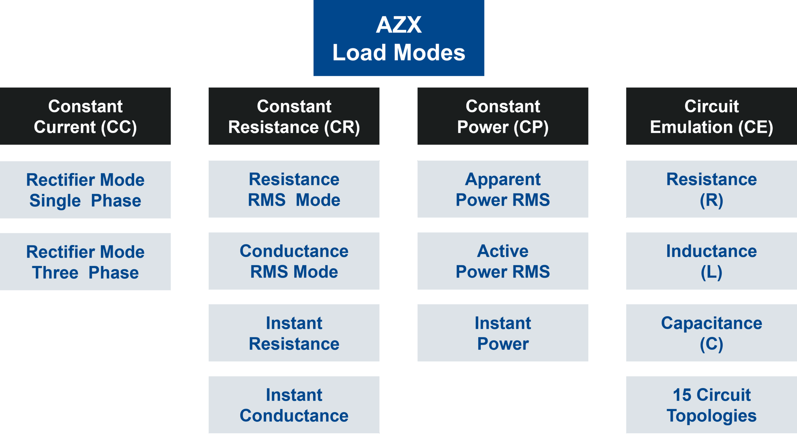 A série AZX é uma fonte de alimentação regenerativa AC/DC de última geração, concebida para aplicações de teste, simulação e operações críticas que exigem flexibilidade, performance e eficiência energética. Ela permite operar como fonte de tensão ou corrente, como carga, e suporta simultaneamente AC e DC por fase, tudo com operação em quatro quadrantes.