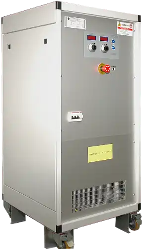 Estrutura modular, montagem em gabinete rodante ou gabinete fixo conforme potência.