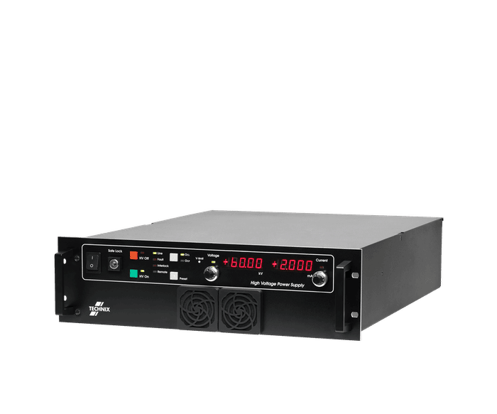 - Fonte de alimentação de alta tensão em corrente contínua (HV DC), capaz de fornecer até 150kV com potência máxima de 2kW. Projetada para aplicações industriais e laboratoriais que exigem tensão estável e confiável.
