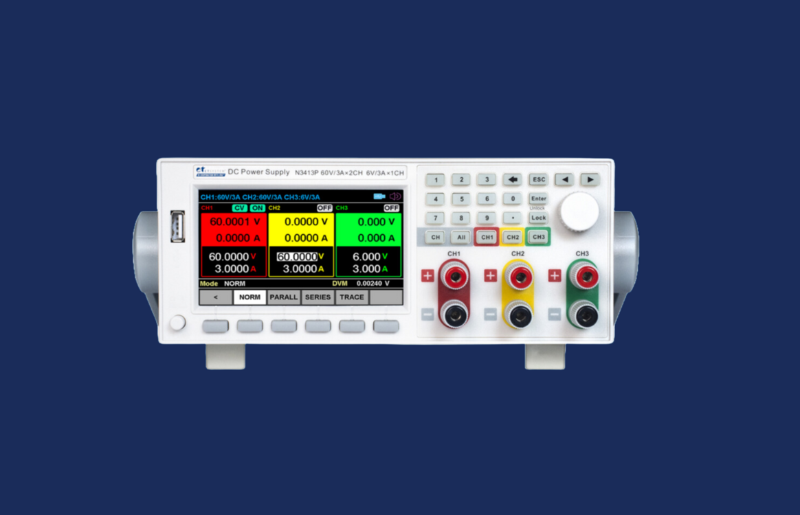 A série N3410 é uma fonte DC linear programável de três canais (Triple-Channel Programmable DC Power Supply) de alto desempenho, projetada para laboratórios, P&D, produção e manutenção eletrônica. Cada canal é isolado eletricamente, permitindo operação independente, em série ou em paralelo, o que proporciona flexibilidade na configuração de tensão e corrente.