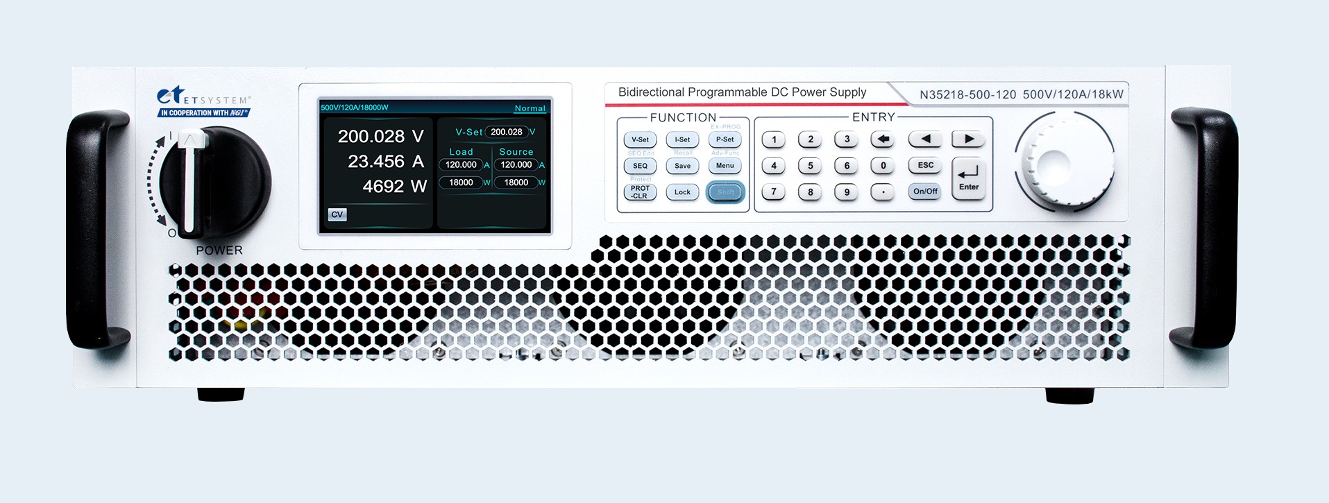 A série N35200 é uma fonte CC bidirecional programável de alto desempenho, projetada para fornecer e absorver energia de forma eficiente, com capacidade de retornar energia limpa à rede elétrica. Equipadas com design de quadrante duplo, essas fontes oferecem versatilidade em aplicações que exigem controle preciso de tensão e corrente, além de alta eficiência energética.