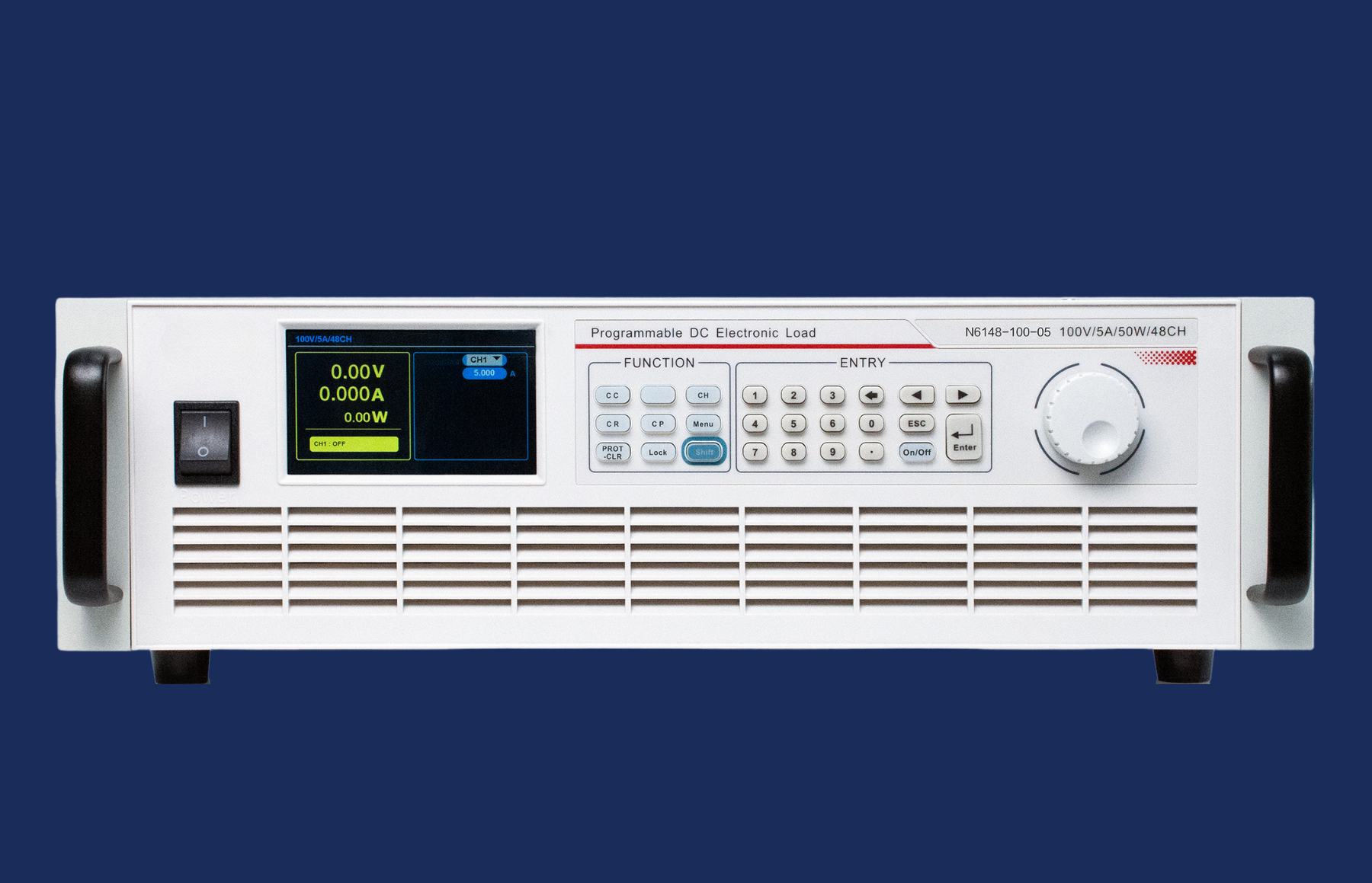 A série N6148 é composta por cargas eletrônicas programáveis DC de alto desempenho, projetadas para uso em bancadas de teste automáticas, sistemas em lote ou ensaios integrados com múltiplos canais. A arquitetura permite integração de até 48 canais independentes em um chassi padrão 19″ 3U, com comunicação rápida e alto grau de integração.