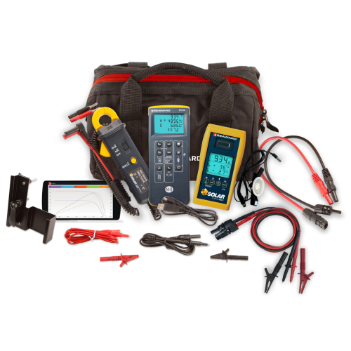 - A unidade também pode capturar e registrar sem fio irradiação, temperatura ambiente e temperatura do módulo fotovoltaico em tempo real a partir do Solar Survey 200R. Usando o Solar Survey 200R, seus dados podem ser convertidos para condições de teste padrão, no SolarCerts, para você comparar com os dados publicados pelo fabricante.